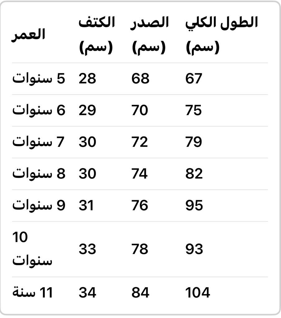 size | 10سنوات, 11 سنة, 5سنوات, 6سنوات, 7سنوات, 8سنوات, 9سنوات |