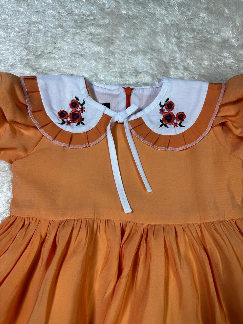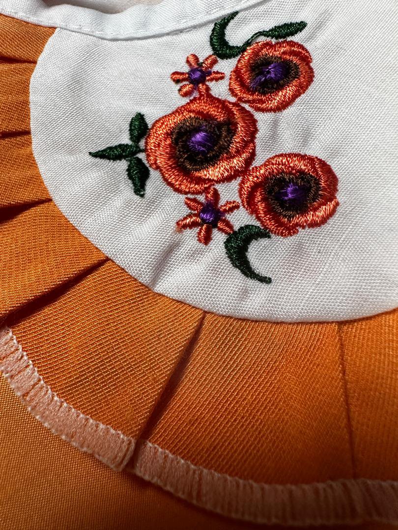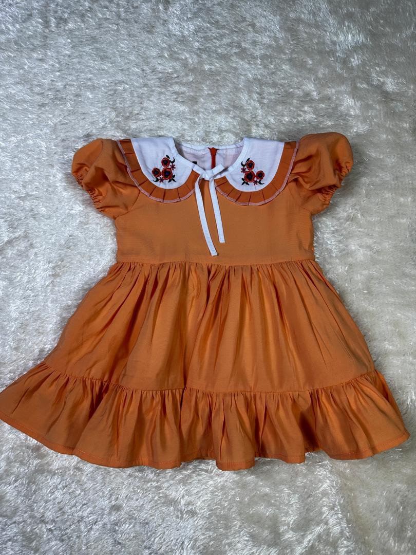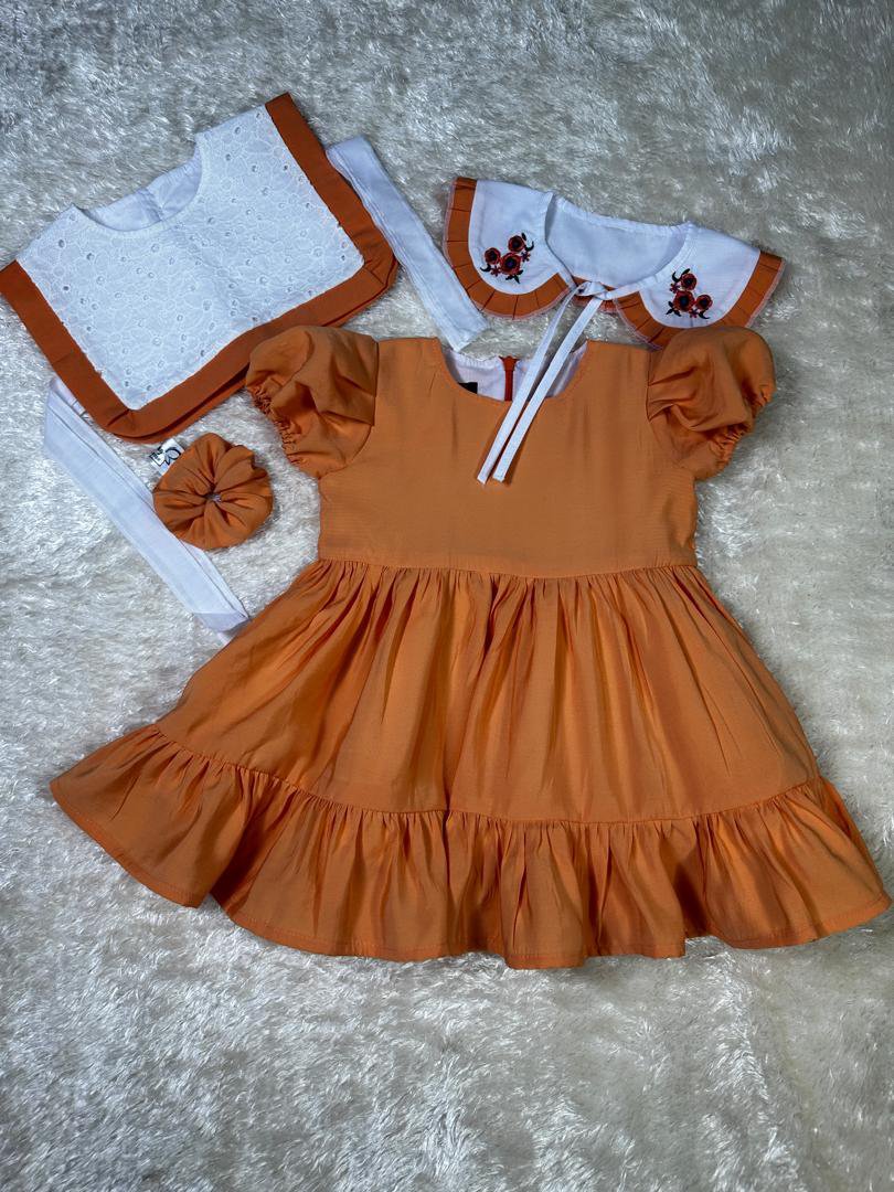 فستان صيفي اربع قطع متكون من فستان من قماش صيفي مع اكسسوار للشعر و2 ياقة الأولى من البوبلين القطني ومطرز والثانيه من قماش برودي انجليزي